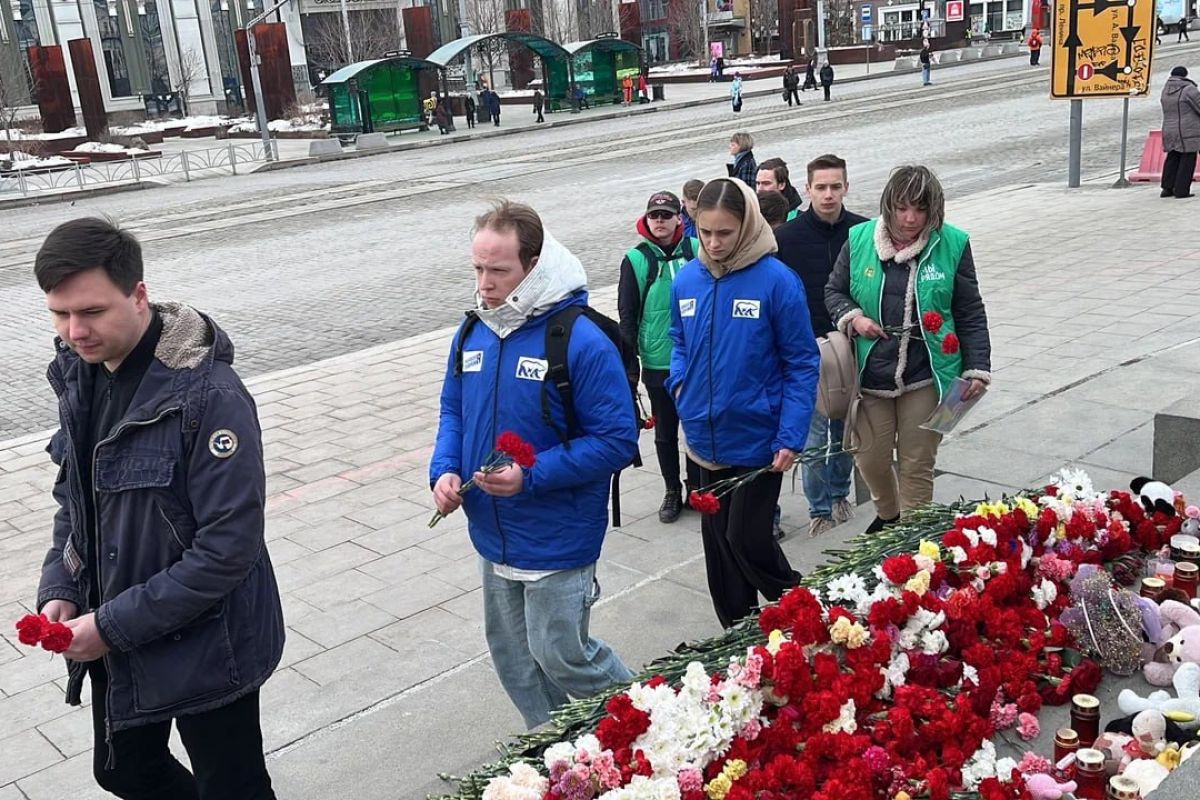 24 марта 2024 года в России день общенационального траура по погибшим при теракте в «Крокус Сити Холле» На главных площадях городов Свердловской области жители организовывают стихийные мемориалы в память о погибших пр