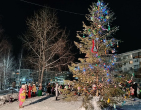 Сегодня вечером - первый в этом году «Новогодний праздник для всей семьи» - собрал у ёлки детей и взрослых во дворе дома, 47 по ул. Ленина.