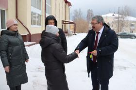 Сегодня состоялась символическое вручение ключей семьям, получившим квартиры в новостройке.