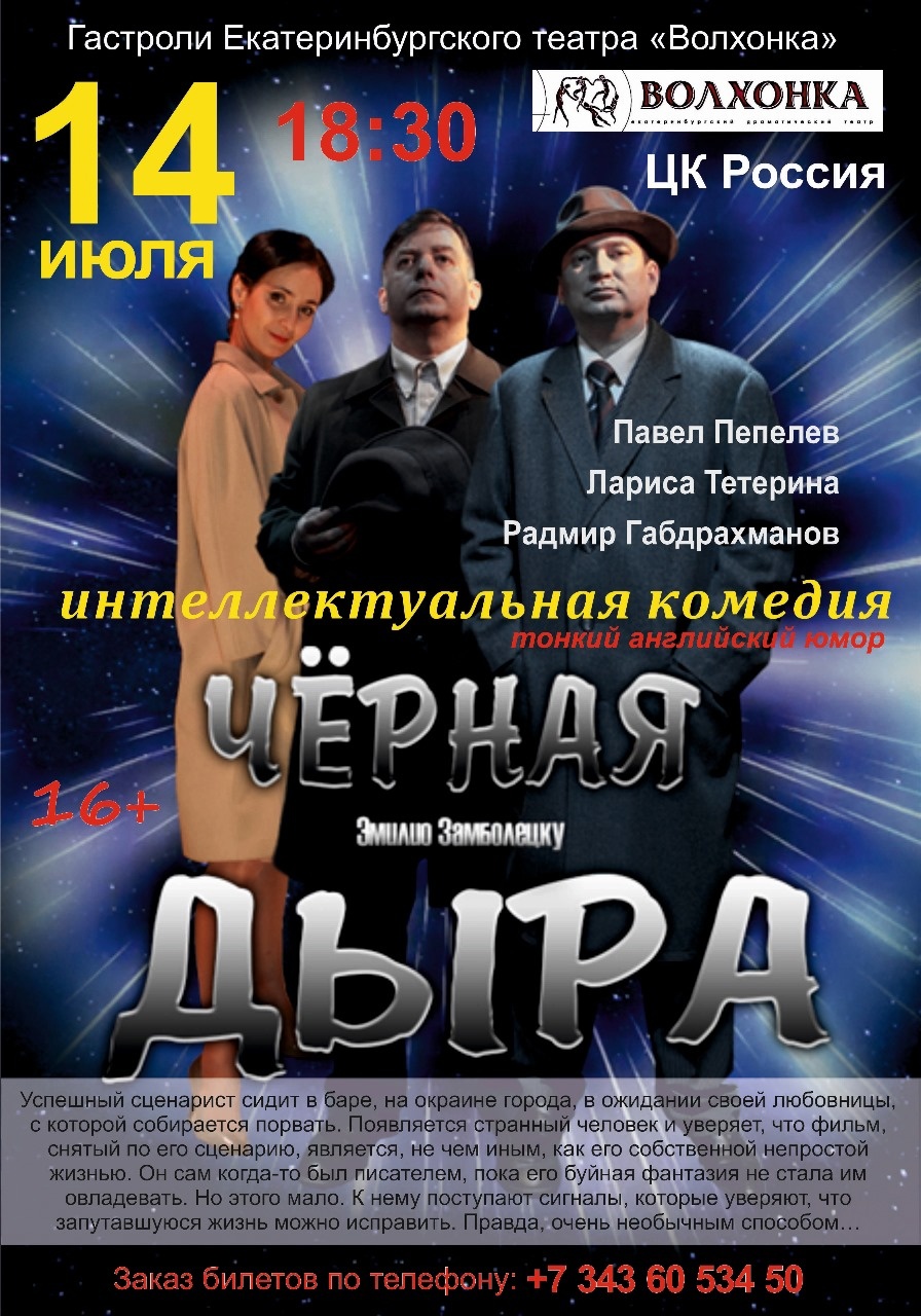 Приглашаем тавдинцев на интеллектуальную комедию по пьесе Эмилио Замболецку «ЧЕРНАЯ ДЫРА»