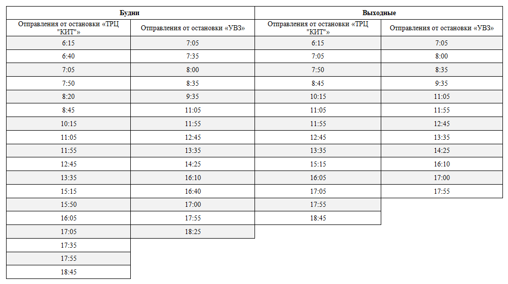 В Нижнем Тагиле изменится расписание движения автобусов по маршруту №77. С понедельника 17 февраля транспорт, связывающий Гальянку и Вагонку, станет ездить чаще и дольше. К примеру, сейчас автобусы от ТРЦ «Кит» до конечной УВЗ по будням выполняют 16 рейсов, а с понедельника их будет 18. Последнее отправление будет на 40 минут позже — в 18:45. Аналогично увеличится количество рейсов и время отправления в выходные. Детально ознакомиться с изменениями в расписании можно на сайте «Тагильского трамвая».