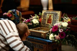 Молебен Успению Пресвятой Богородицы с Акафистом и молитва о Святой Руси совершаются в течение Успенского поста у ковчега с частью Пояса Пресвятой Богородицы в Храме-Памятнике на Крови.